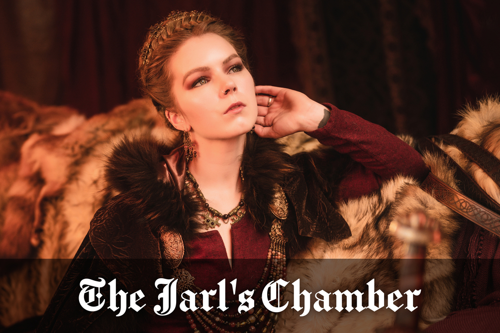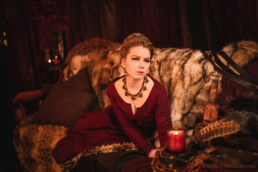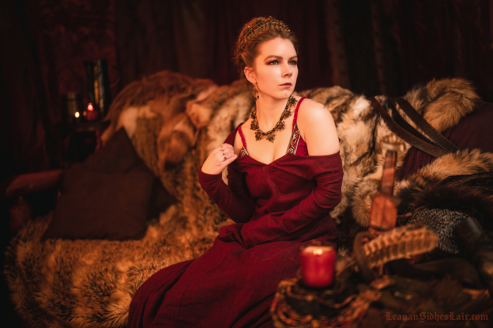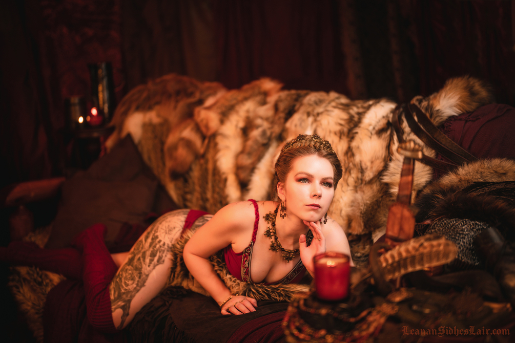 The "Jarls Chamber" photo collection is a loungey & luxurious view of a regal Viking queen disrobing for her jarl.